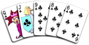 Five of a Kind - A hand that contains four cards of the one rank and a Joker.