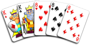 Four of a Kind - A hand that contains four cards of the one rank and an unmatched card of another rank