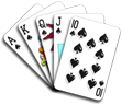 Royal Flush - A hand that contains an Ace (high) straight, and all the suits are the same (flush)